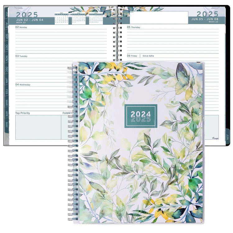 Aesthetic Planner Academic Year July 2024 June 2025 8.5x1 July 2024–June 2025 planner with monthly tabs, pocket folders, durable ink-resistant pages, and 15-minute daily slots. Starts Monday, ends Sunday, with strong binding.